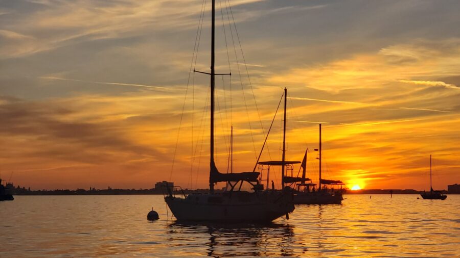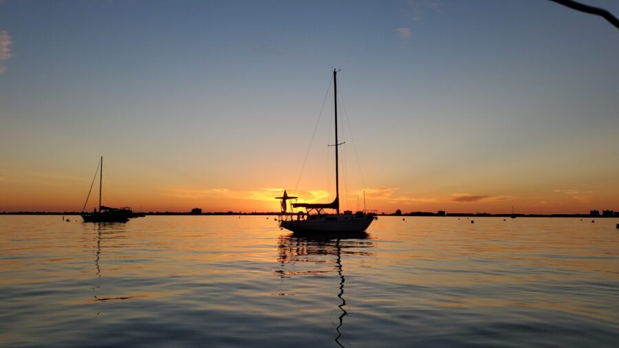 When we were back in Gulfport for Kenny’s second vaccination we hired some professionals to clean the fuel tank and “polish” the fuel. We figured that solved the problem, but about a week later, en route to Ft. Myers in a busy section of the intracoastal waterway known as the “Miserable Mile” because of its swift current, the engine died again. We were floored. I hooked a u-turn and Kenny quickly unfurled the genoa. The current was threatening to push us out of the channel into the shallow water as Kenny worked on raising the mainsail. We made it passed the last red marker by the skin of our teeth, motorboats zooming passed us in both directions, oblivious to our predicament. We found a safe spot nearby to drop the anchor. Phew.