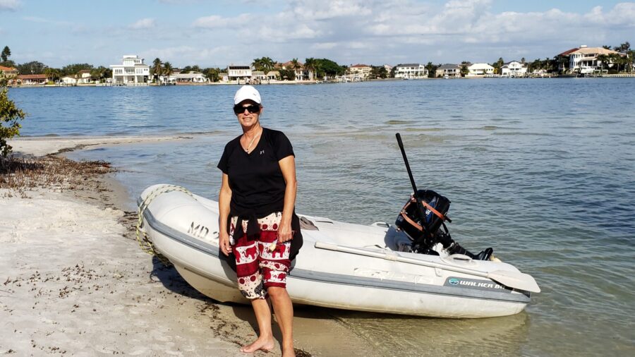 It was fun to be back in Sarasota. One of our favorite towns, though we wouldn’t be going to the movie theater or our favorite live music venue. We did enjoy a few meals outside in nearly empty restaurants. We did our grocery shopping at the Whole Foods on line and stood in the assigned parking space with our heavy duty grocery bags for curbside pickup. Then we’d tote all the goods back to the dinghy and on to Mary T, where I’d go through my cleaning and sanitizing process, before stowing everything.