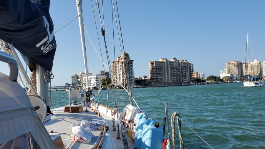 Kenny’s niece managed to wrangle him a Moderna vaccine through her job at Johns Hopkins All Children’s Hospital in St. Pete, a few miles up the road from Gulfport. They had additional doses after the staff were treated so their relatives over 65 were invited to come in and get poked. It was so kind of Elsa to think of her uncle Kenny. We had recently completed the necessary repairs to Mary T, so after Kenny’s first dose of the Moderna vaccine, on February 3rd, we sailed away from the mooring, mindful that we’d need to return in a month for his second shot.