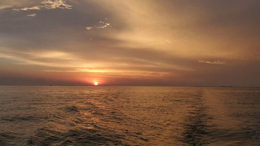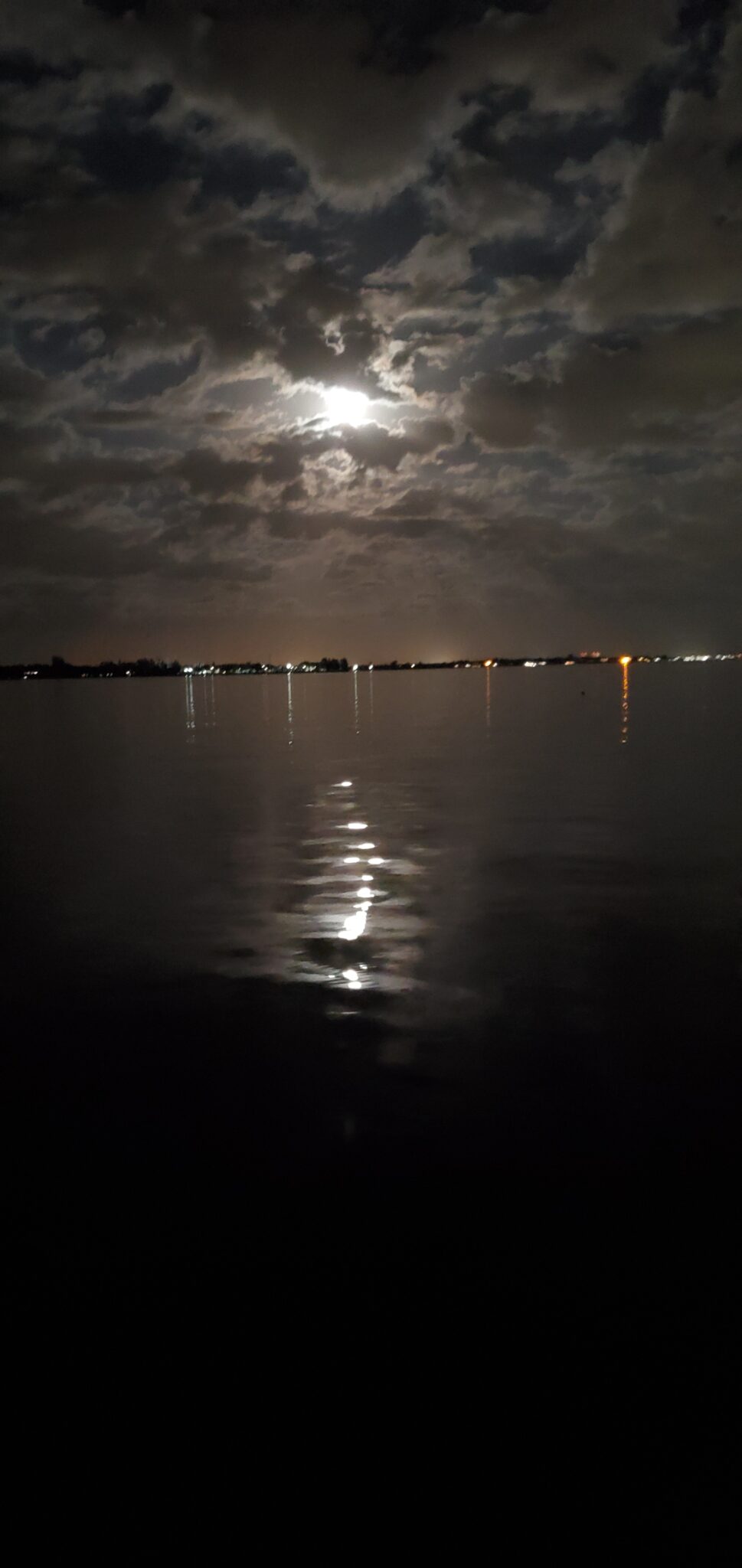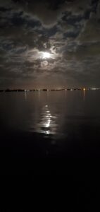 The next day wind was light but favorable, making for delightful sailing. I estimated if we kept up the same gentle pace, we could arrive at Gulfport the following morning. After a few hours, the wind died again. We cranked up the engine. At this more speed, we’d arrive in the middle of the night. It’s no fun to arrive in darkness as city lights confuse the mariner and make it difficult to make out the navigational lights. We went as far as Bradenton and dropped the anchor off De Soto Park again. It was dark when we arrived, but there were no city lights to confound us.
